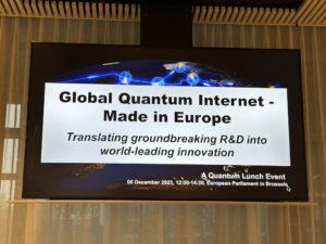 The lunch event, titled “Global Quantum Internet – Made in Europe. Translating groundbreaking R&D into world-leading innovation“, was organised at the sidelines of the European Innovation Area Summit 2023 taking place from 4th– 6th December 2023 in Brussels. The event was hosted by MEP Ivars Ijabs and organised by Quantum Internet Alliance, QuTech/Delft University of Technology and K4I Forum in the European Parliament. MEP Maria Da Graça Carvalho and EC Acting Director of DG CNECT.C Gustav Kalbe were also present to discuss with thought leaders and decision makers from other public entities, universities, startups and major industry players in the region.