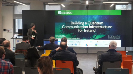IrelandQCI ‘Building a National Quantum Communication Infrastructure for Ireland’ incorporates integrating innovative and secure quantum devices and systems into conventional communication infrastructure. The project aim is establishing an infrastructure for Quantum Key Distribution (QKD), a method of communication based on sharing encryption keys using quantum physics in a manner that boosts security, which will be distributed over the existing classical network, creating a quantum communication network that will provide a huge increase to information security in Ireland.