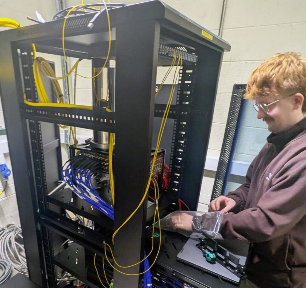 Pictured: Jimí recently travelled back to Dublin to provide installation support for a Single Quantum single-photon detection system at Trinity College Dublin Quantum Facililty as part of the IrelandQCI project.
